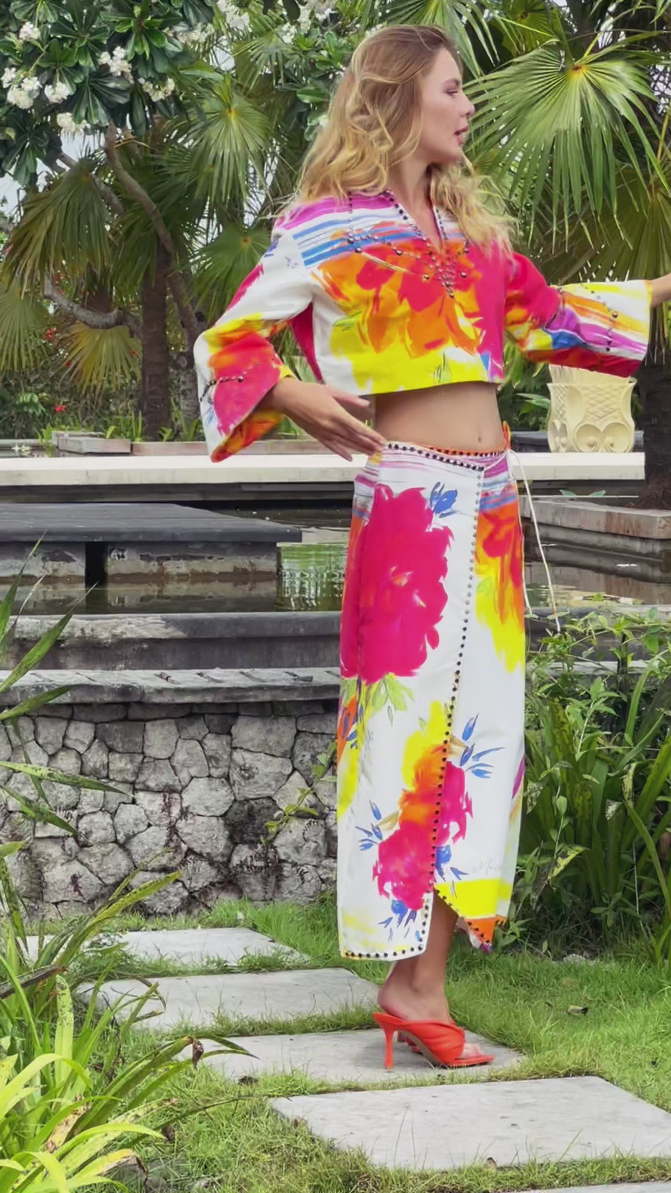 Introducing the Rainbow Stylin' Midi Skirt, a must-have addition to your wardrobe this season. This skirt boasts a modest length, perfect for any occasion. Its vibrant and eye-catching bright floral print is exclusively designed to add a touch of elegance and charm to your outfit.